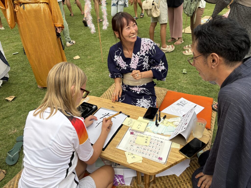 Each country’s stall had its own unique, hands-on activity. My favorite was the Japanese stall, where I got to try my hand at calligraphy.